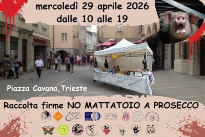 Le associazioni animaliste di Trieste si oppongono alla riapertura del mattatoio di Prosecco. Saremo in Cavana a raccogliere firme. Maggiori info sul sito NO MATTATOIO.