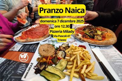 Anche quest'anno ci vediamo per scambiarci gli auguri e mangiare assieme cibo vegan presso la pizzeria Milady, via Pascoli 47, Trieste, domenica 7 dicembre 2025. Qui dettagli